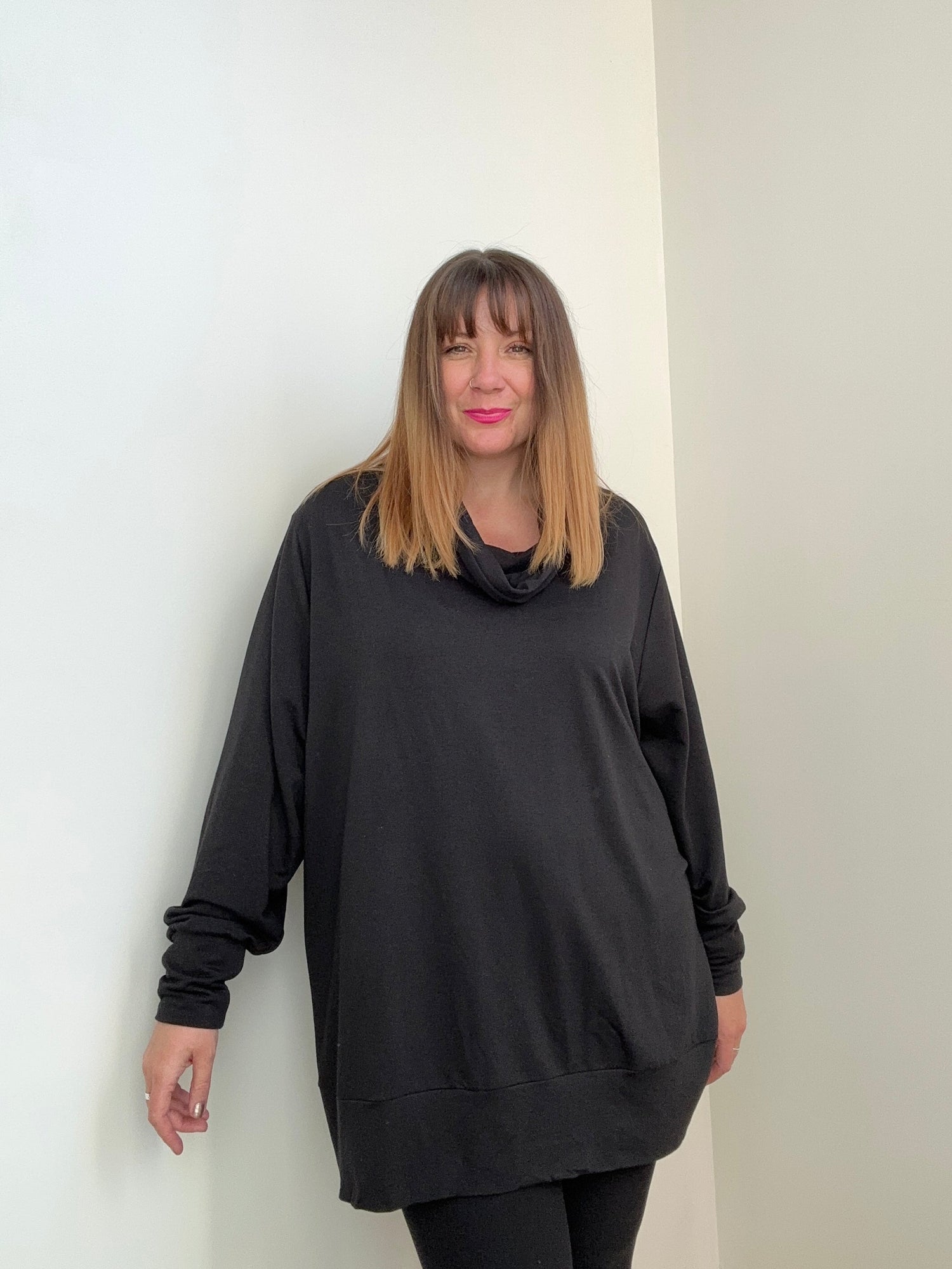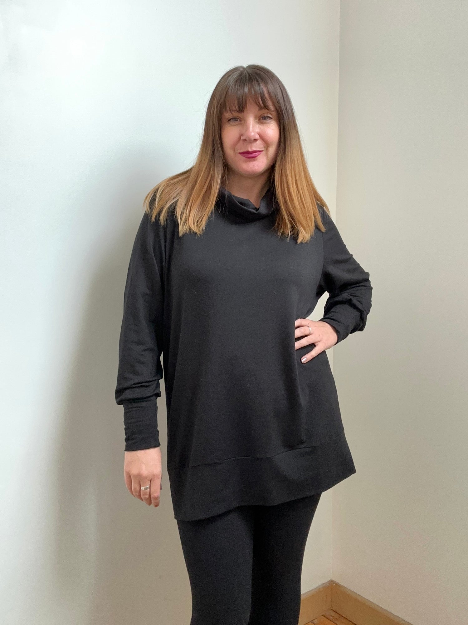 I can't stop wearing this sweater. It's soft, but in a textured cotton way, not an artificial fibre way, so it's warm while also being breathable. The neckline is wonderful (I wasn't 100% sure about it at first, but it sits almost like a cowl neck once the sweater has settled onto your body - cozy without being constricting.) The length is below my hips even on my very busty, long-torso, 180cm frame. The details that make this stand out as a fashionable piece don't do anything to take away from it's cozy comfort. I'm obsessed!
