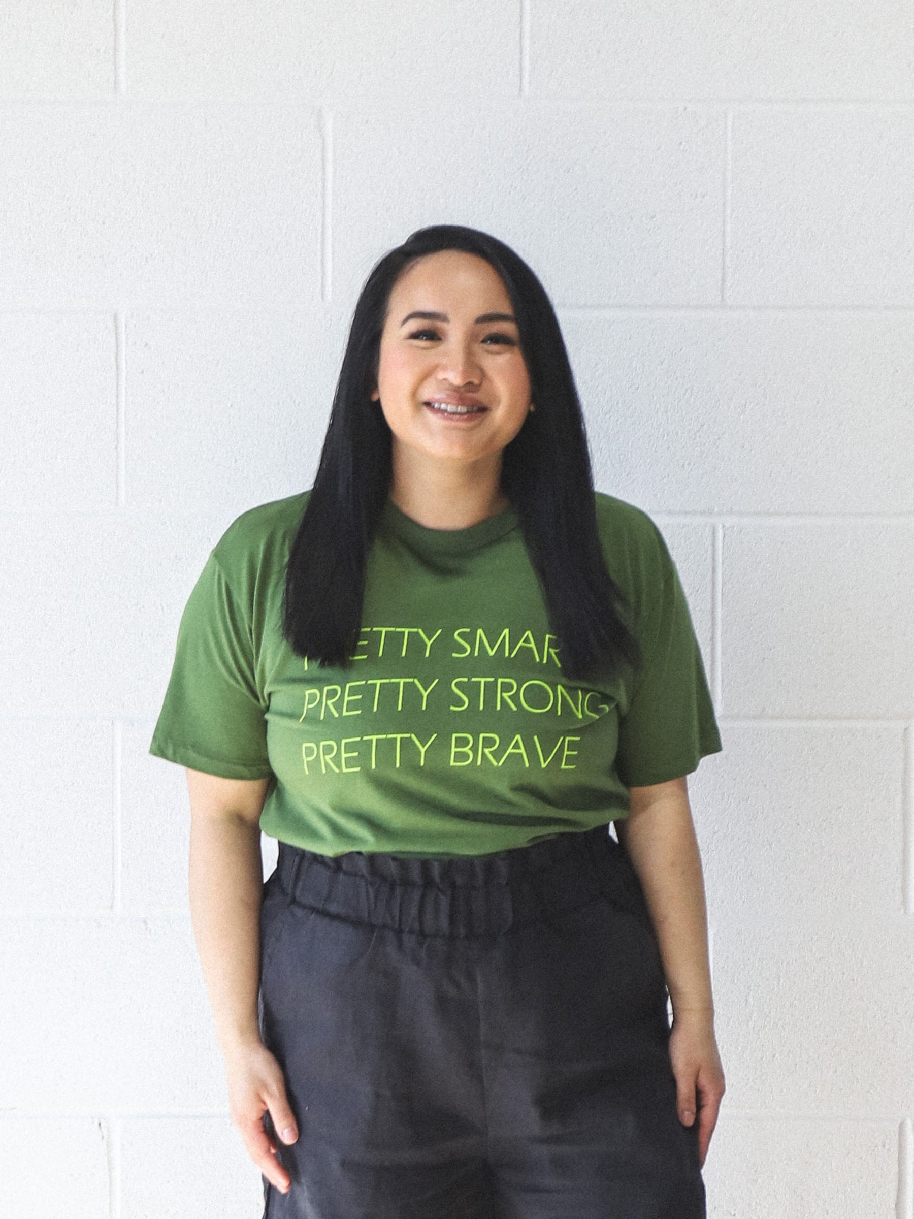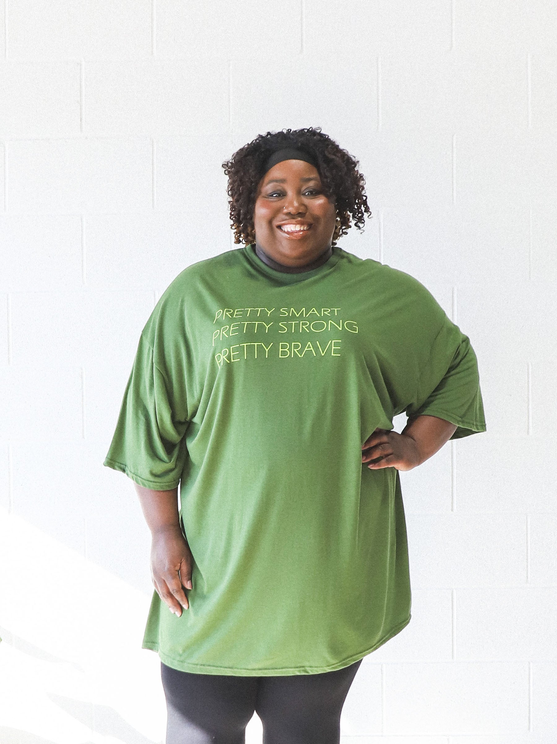 By wearing this shirt we are taking back the word Pretty that is so often what women are reduced to. We are so much more than our looks. This project is meant to not only empower the women that wear these shirts but also to anyone who reads them.