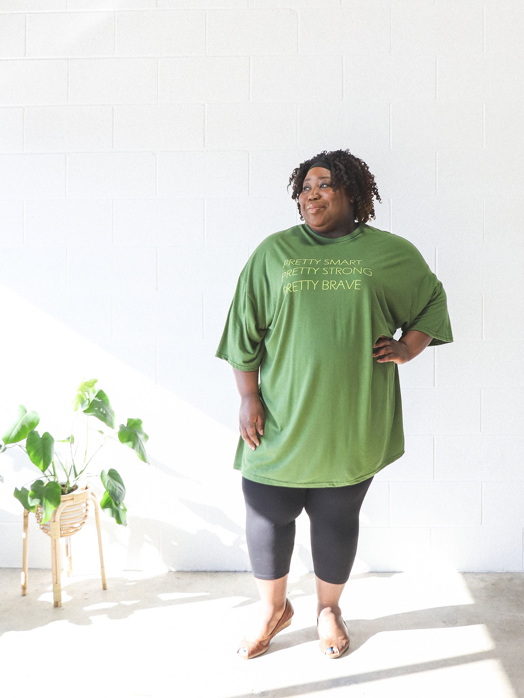 Now Available in new 4X & 5X! These are a beautiful flowy fit, more like a tunic top fit rather than just a t shirt fit. Hoping everyone will love these new sizes as much as we do! *Charmain is wearing the 4X