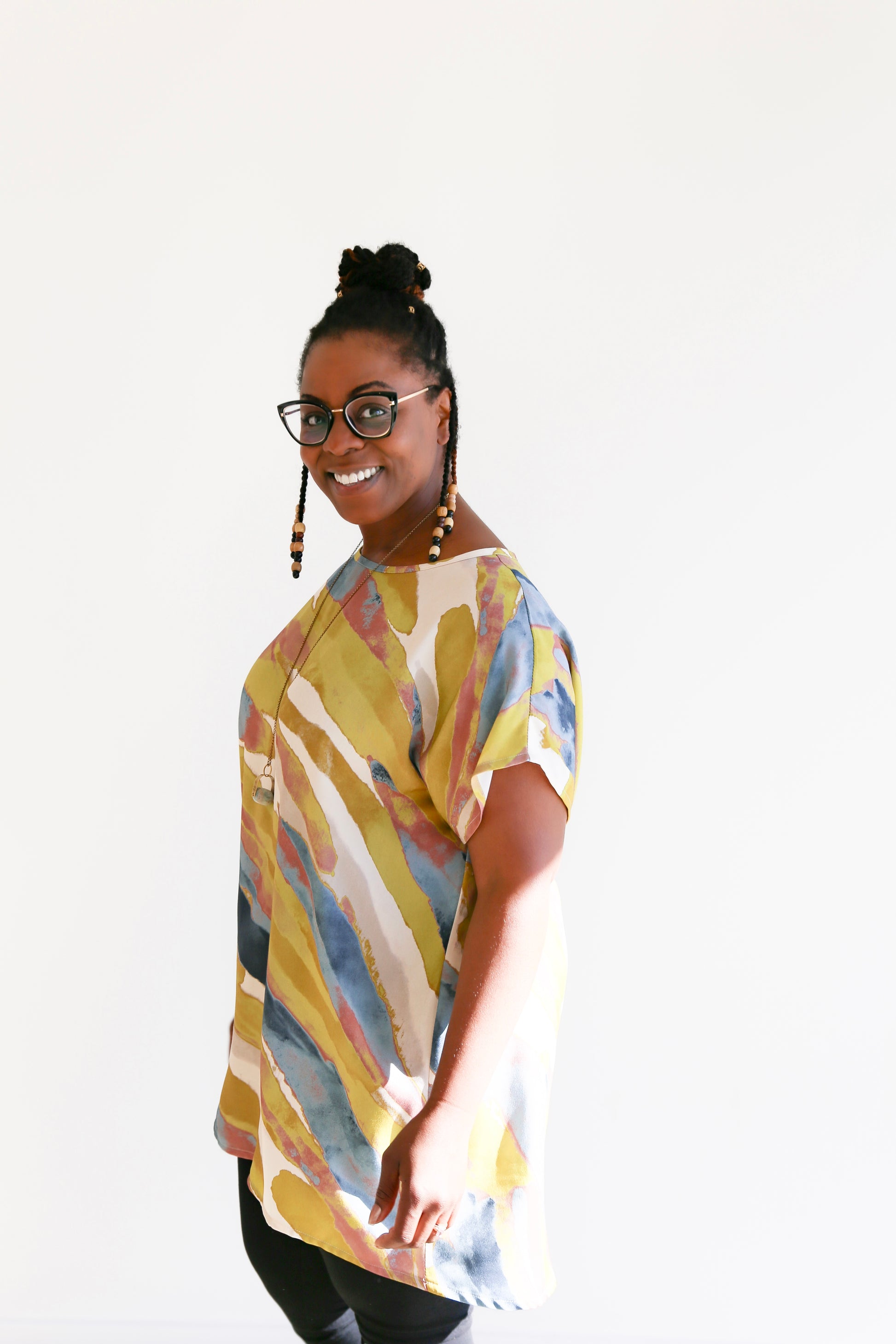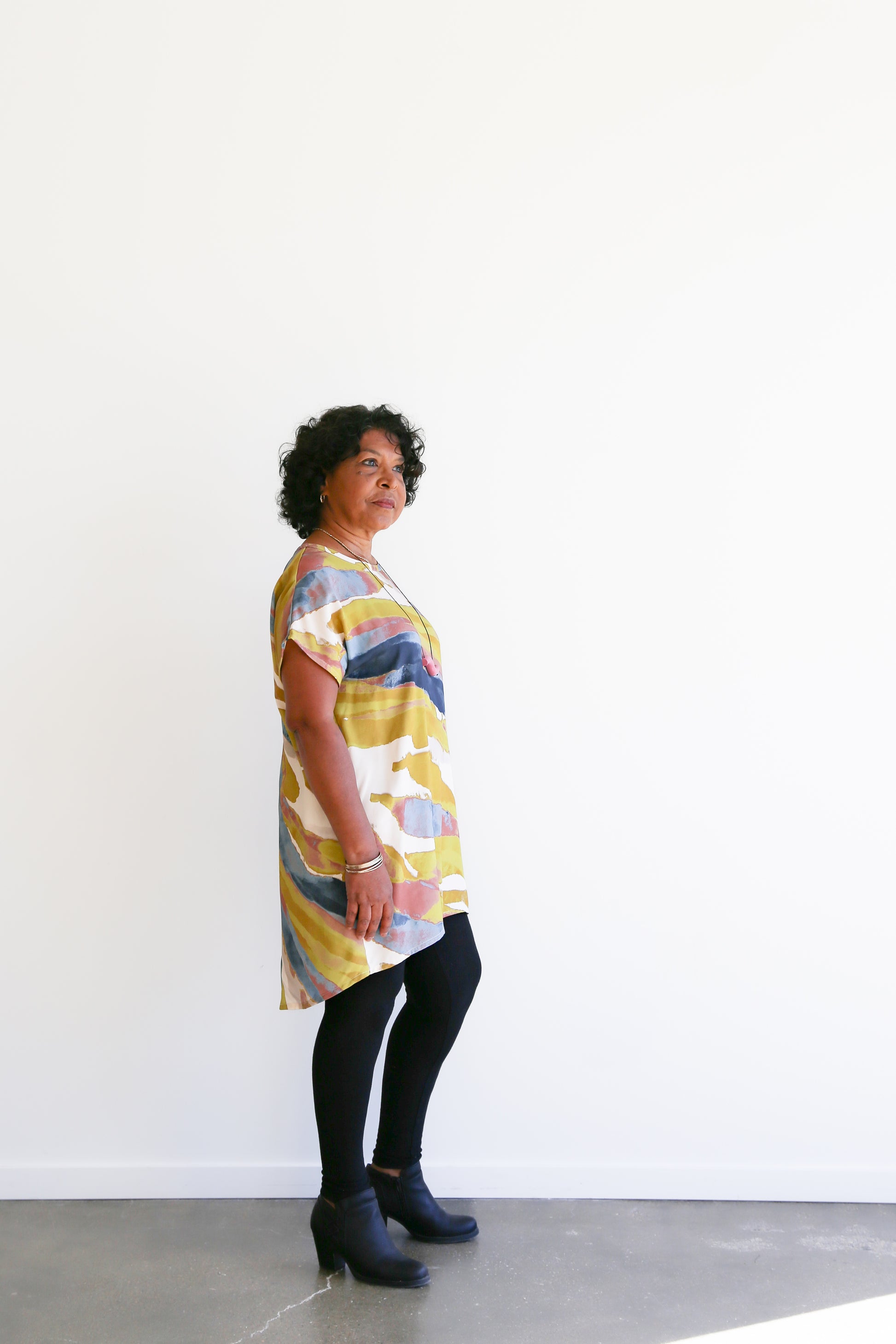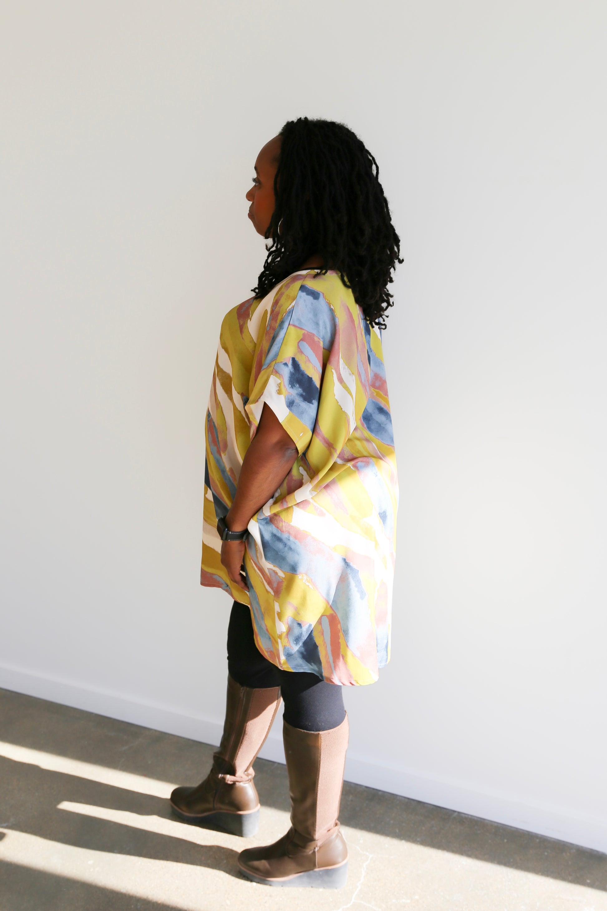 This is the Sheila Tunic Top that debuted last year in another print that sold out because it was so gorgeous on so many different people. It is back this year by popular demand, now in this beautiful new print. Featuring a slight grown on sleeve, scoop neck and a high/low scoop hem. It feels so comfortable on, but definitely looks dressier so perfect for an evening out.