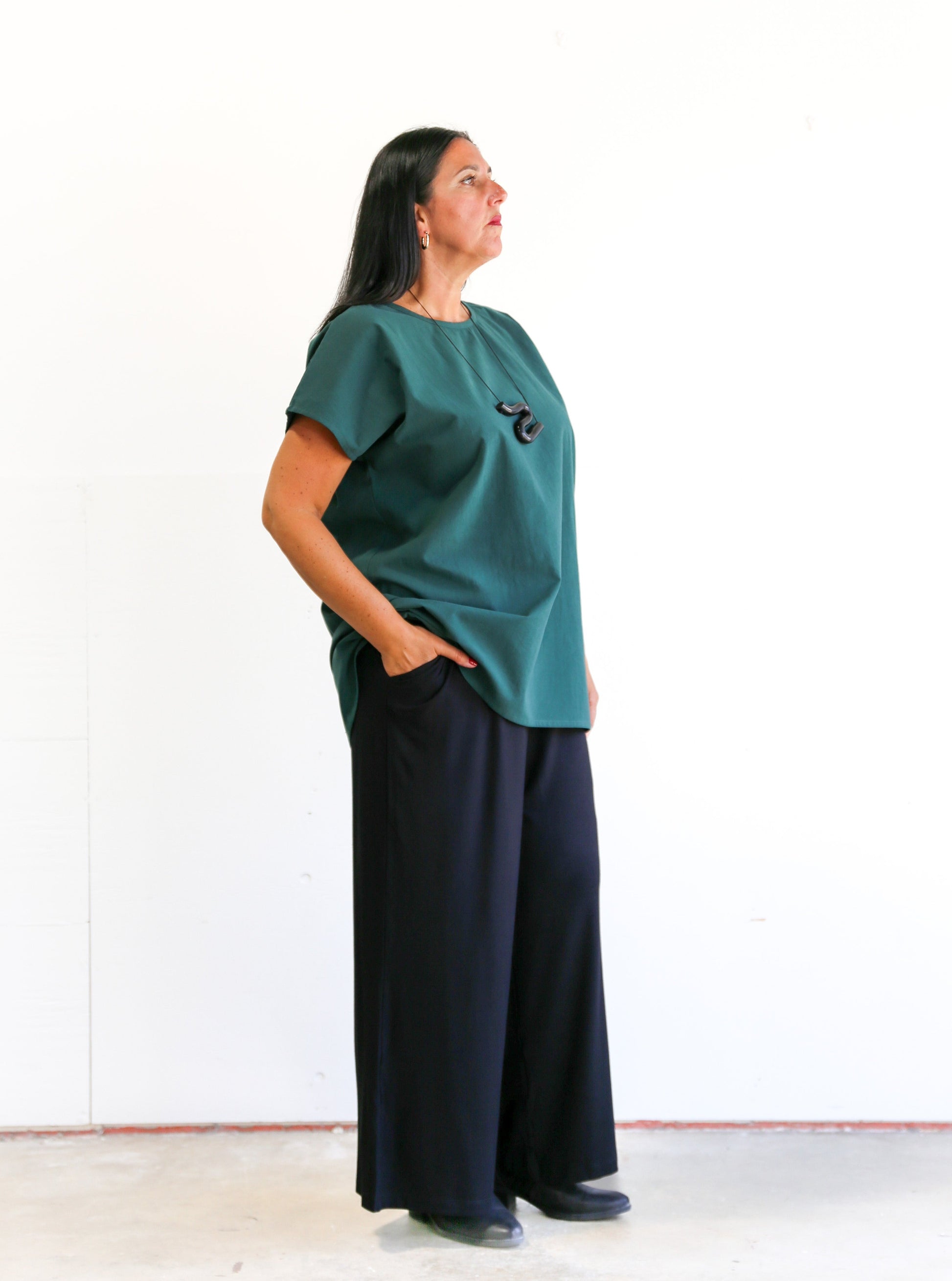 This one is in the brushed cotton fabric in the gorgeous Pine colour. This fabric is so soft but with a little bit of structure, almost like a casual dress shirt. Featuring a slight grown on sleeve, scoop neck and a high/low scoop hem.